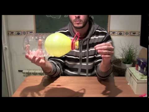 En el interior de la botella, aunque no lo veamos, hay aire. Cuando inflamos el globo, el aire que hay en la botella sale por el agujero inferior. En cambio, cuando tapamos el agujero, se produce un vacío y la presión atmosférica exterior, que es mayor que la interior, impide que el aire salga y, por tanto, el globo no se desinfla.
